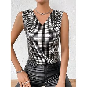 Per donna Canotta a canotta Paillettes Tinta unica Festa Elegante Senza Maniche Scollo a V Top Regolari Ferie Uscire Argento Oro Estate Primavera Autunno