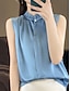 Per donna Canotta a canotta Volant Tinta unica Quotidiano Elegante Essenziale Senza Maniche Collo Alto Top Regolari Quotidiano Blu Nero Bianco Champagne Verde Estate Primavera