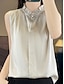 Per donna Blusa Bottoni Tinta unica Vintage Elegante Casual Senza Maniche Scollo a V Top Regolari Quotidiano Blu Nero Bianco Vino Verde militare Estate Primavera