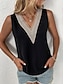 Per donna Blusa Pizzo Patchwork Tinta unica Elegante Vintage Casual Senza Maniche Scollo a V Top Regolari Quotidiano Blu Nero Bianco Rosso Estate Primavera