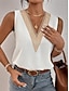Per donna Canotta Maglietta senza maniche Maglietta Tinta unica Elegante Moda Classico Senza Maniche Scollo a V Top Regolari Quotidiano Uscire Weekend Nero Bianco Estate Primavera