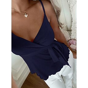 Per donna Blusa Top corto avvolgente Top Eleganti Canotta a canotta Arricciato Bottoni Tinta unica Semplice Elegante Vintage Signore Senza Maniche Scollo a V Top Regolari Quotidiano Lavoro Ferie Blu