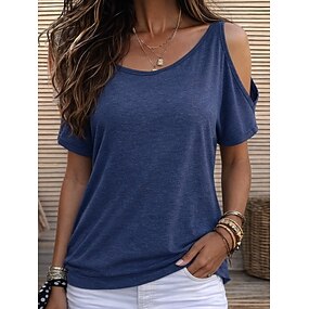 Per donna Maglietta Tinta unica Elegante Casual Manica Corta Top con spalle scoperte Top lunghi Quotidiano Uscire Blu Nero Bianco Rosa Vino Estate Primavera