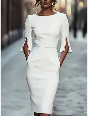 Per donna Abito Midi Abito da lavoro Attillato Abito a Tubino Elegante Moda Moderno All'aperto Ufficio Vacanza Vestibilità regolare Semplice Mezza Manica Girocollo Nero Bianco Rosa Estate Primavera