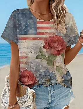 Giorno dell'Indipendenza Americana Per donna Mini Abito Vestito T-Shirt Abito a trapezio Vacanza Casual Quotidiano Vestibilità regolare Grafico Bandiera Americana Manica Corta Scollo a V Blu Bianco