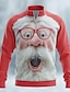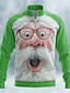 Natale Per uomo Babbo Natale Polo Manica Lunga Colletto Mao Casual Quotidiano Vacanza Festival Cerniera Stampa 3D Primavera Autunno Inverno Bianco Verde Rosso