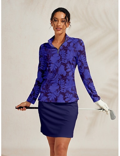 Per donna POLO Blu Manica lunga Superiore Floreale Abbigliamento da golf da donna Abbigliamento Abiti Abbigliamento