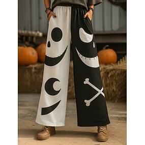 Pantaloni Culotte in Lino da Donna Stile Etnico Vintage Pantaloni a Gamba Larga Vacanza Altezza Totale Vita Alta Grafica Teschio Zucca Asciugatura Rapida Traspirabilità Morbido Inelastico Sport