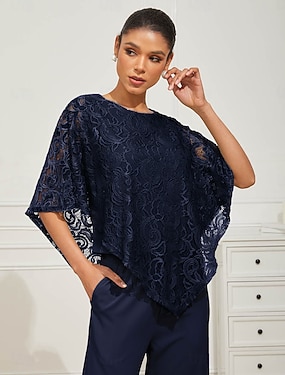 Per donna Blusa Top Eleganti Pizzo Patchwork Stratificato Semplice Elegante Mezza Manica Girocollo Top Regolari Quotidiano Ospite di nozze Verde salvia Estate Primavera