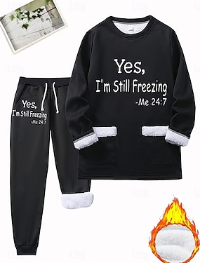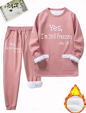 Felpa da donna felpa foderata in pile pigiama caldo felpa Sherpa lettere street casual morbida confort collo rotondo maniche lunghe top micro-elastico autunno e inverno confort traspirante tessuto
