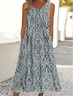 Per donna Prendisole Abito senza maniche Abito estivo Abito stampato Attivo Di tendenza Hawaiano Da mare Per eventi Spiaggia Morbido Senza maniche Girocollo blu acqua Crema Vino Rosso Estate Primavera