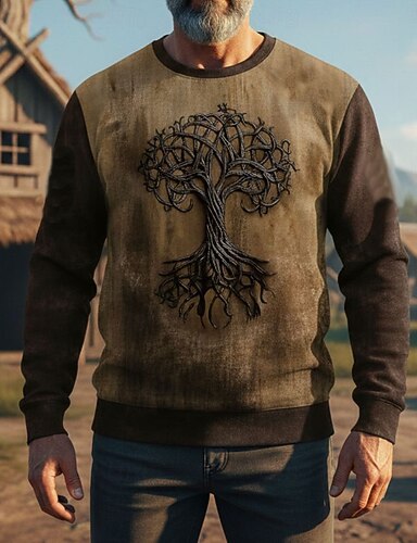 Per uomo Maglia Blu Verde militare Marrone Girocollo Albero della vita Yggdrasil Nodo celtico Stampato Casuale Quotidiano Abbigliamento casual alla moda Vintage Vichingo Autunno Inverno Abbigliamento