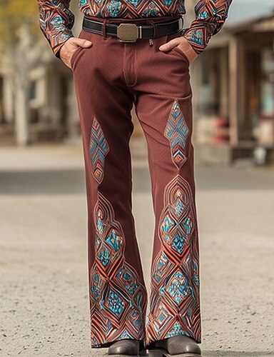 Per uomo Motivo Geometrico Etnico Pantaloni Pantaloni da discoteca Pantaloni a zampa d'elefante anni '60 e '70 Misura del girovita medio Western Vintage Retrò All'aperto Vacanza Casuale Tasche