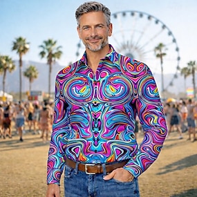 Retrò Vintage Anni '70 Camicia Disco Geometrico Psichedelico Costume Per uomo Halloween Carnevale Festival Musicale Parata dell'Orgoglio Adulti Camicia