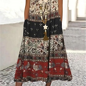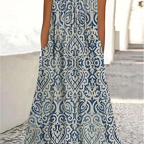 Per donna Abito Lungo Maxi Abito Vestito Casual Abiti Boho Chic Abito Boho Elegante Bohemien Casual Vacanza Casuale Quotidiano Vestibilità regolare Grafico Manica Corta Scollo a V Rosso Blu marino