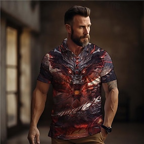 Per uomo Drago Maglia da golf Manica Corta Magliette polo Camicie con Colletto Casual Divertente Abbigliamento da vacanza Abiti da festa Bottoni Stampa 3D Estate Giallo Vino Rosso