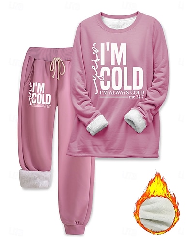 Per donna Elegante Caldo Moda Set da due pezzi Tuta Set di Pantaloni Manica Lunga Manica a Vescovo Girocollo Grafico Lettera Stampato All'aperto Vacanza Quotidiano Nero Rosa Rosa scuro Primavera