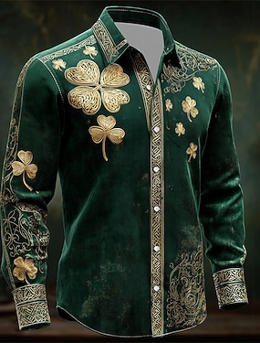 Camicia grafica trifoglio da uomo del giorno di San Paddy Camicia con bottoni Camicia da spiaggia Maniche lunghe Hawaii Casual Confortevole Vacanza Festa Giorno di San Patrizio Estate Primavera