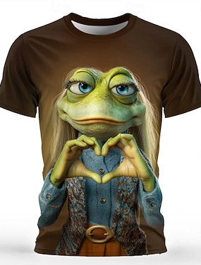 Per uomo Animale Rana Divertente Maglietta Manica Corta maglietta Stampa 3D Girocollo Camicia Esagerato Designer Feste Ferie Blu Marrone Scuro Rosa Estate Primavera Abbigliamento S M L XL XXL XXXL