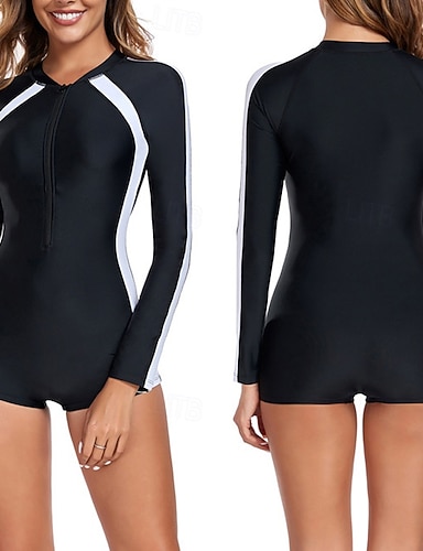 Per donna Top sottomuta Costume Intero Patchwork Tinta unita Cerniera Frontale Protezione Solare UV Asciugatura Rapida Leggero Manica Lunga Body costume da bagno Surf Spiaggia Sport Acquatici Estate