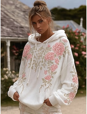 Per donna Felpa con cappuccio Floreale Grafico Elegante Caldo Attivo Manica Lunga Con Cappuccio Top Regolari Streetwear Abbigliamento Quotidiano Casuale Patchwork Stampato Bianco Primavera Autunno