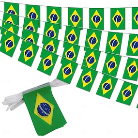 stendardo con bandiera brasiliana in corda per la partita della coppa del mondo di calcio estiva, 50 bandiere, 46 piedi, piccole mini bandiere brasiliane, stendardo con bandierine per decorazioni