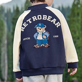 Bambini Unisex Giacche da baseball Capispalla Blocco di colori Manica Lunga Comfort Bottoni Morbido Cappotto All'aperto Moda Quotidiano Blu Grigio Primavera Autunno Dai 4 anni in su