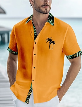 Per uomo Albero di Cocco Palma Piante Tropicali Camicia hawaiana estiva Camicia Aloha Camicie Stampate Manica Corta Camicia Collo ripiegato Hawaiano Resort All'aperto Vacanza Feste Cachi S M L