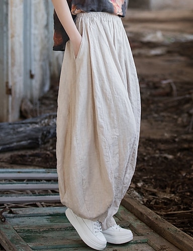 Per donna Pantaloni in cotone e lino Pantaloni Pantaloni Estivi Pantaloni Larghi Vacanza Vintage Moda Lunghezza intera Misura del girovita medio Tinta unica Elastico in vita Asciugatura Rapida