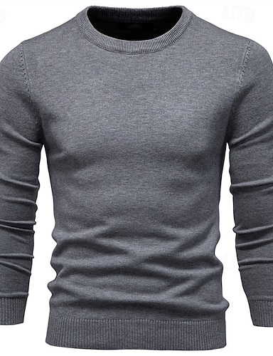 maglione girocollo in cotone tinta unita da uomo, maglione casual alla moda, classico per uomo