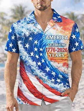 Giornata dell'indipendenza Per uomo Bandiera Americana 4 luglio, 250° anniversario degli Stati Uniti Patriottico Camicia Camicia casual Camicia con colletto cubano Manica Corta Moda Casual