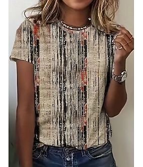 Per donna Maglietta Stampato Floreale Grafico Astratto Elegante Classico Casual Manica Corta Girocollo Top Regolari Quotidiano Marrone chiaro Cachi Arcobaleno Estate Primavera Autunno Inverno