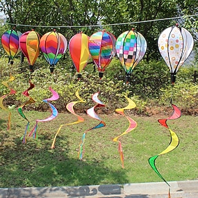 arcobaleno mongolfiera striscia del vento paillettes tinta unita mulino a vento transfrontaliero rotante colorato girandola per esterni arredamento da giardino