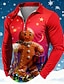 Natale Per uomo Babbo Natale Polo Manica Lunga Magliette polo Bavero Casual Ferie Abbigliamento quotidiano Abito da festa Stampa 3D Polo con cerniera a un quarto Primavera Autunno Inverno Rosso 1