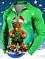 Natale Per uomo Albero di Natale Novità Polo Manica Lunga Collo ripiegato Moderno Casual Athleisure Casual Quotidiano Festival Cerniera Stampa 3D Primavera Autunno Inverno Color carne