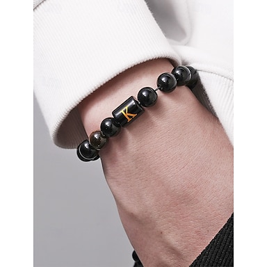 Bracciale regolabile da uomo in pietra naturale con design a lettere dell'alfabeto, personalizzabile con 26 lettere, perfetto come regalo, per occasioni casual e speciali