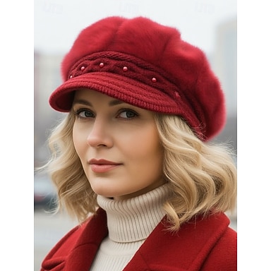 berretto da donna in pelliccia sintetica di poliestere, decorato con perle, disponibile in più colori, perfetto per la moda invernale