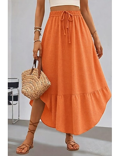 Per donna Gonna da vacanza Bohemien Vintage Moda Etnico Maxi Vita Alta Gonne Semplice Arricciato Patchwork Foratura a caldo Inelastico Spiaggia Vacanza Blu Verde mela Marrone rossastro Giallo Chiaro
