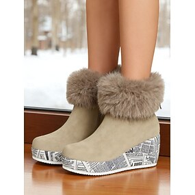 Per donna Stivali Stivali da Neve Lavoro Quotidiano Tronchetti Cerniera Zeppa Punta Tonda Pelliccia Finta pelle scamosciata Cerniera Nero
