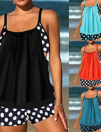Per donna Tankini Costume da bagno a due pezzi Con balze Costumi da bagno Costumi da bagno Giallo Rosso Traspirante Asciugatura rapida Leggero Senza maniche - Nuoto Surf Spiaggia Estate Primavera