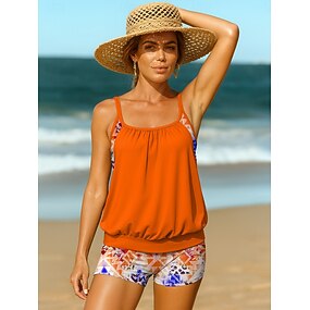 Per donna Costumi da bagno Tankini Due pezzi Shorts Costume da bagno Controllo della Pancia Vita alta Snello Senza schiena Vacanza Abbigliamento da Spiaggia Floreale Grafico Scollo a V Senza Maniche