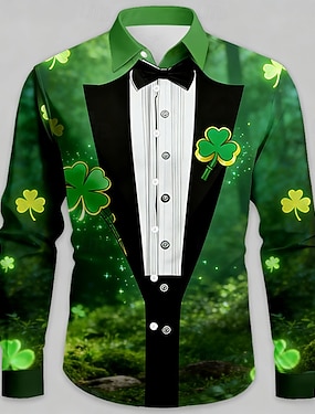 Camicia trifoglio a quattro foglie con colletto finto e design su divisa da uomo del giorno di San Patrizio Camicia con bottoni Maniche lunghe Moda Casual Festa Primavera Autunno Colletto a risvolto