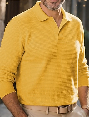 Per uomo Magliette Polo a Nido d'Ape Maglia da golf Lavoro Casuale Bavero Manica Lunga Essenziale Moderno Semplice Bottoni Primavera Autunno Vestibilità regolare Nero Bianco Giallo Rosso Grigio