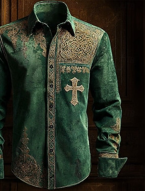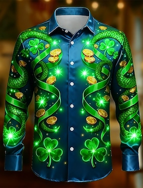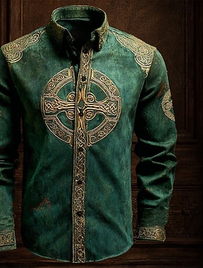 Festa di San Patrizio Per uomo Quadrifoglio Trifoglio Arte celtica Camicia Camicia con Bottoni Manica Lunga Vintage Retrò Ferie Primavera Autunno Collo ripiegato Stampa 3D Camicia tipo lino Verde