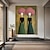 donna dipinta a mano con vestito verde, dipinto a olio su tela, grande opera d'arte figurativa astratta, ritratto femminile unico fatto a mano