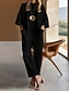 Per donna Normale Tuta Attivo Tinta unica Manica 3/4 Girocollo Tasca Vacanza Quotidiano Vestibilità comoda Nero Bianco Estate