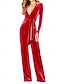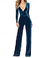 Per donna Normale Tuta Elegante Tinta unica Manica lunga A V Vita alta Matrimonio Feste Standard Blu Fucsia Verde Primavera