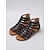 Sandali gladiatore da donna neri intrecciati, sandali piatti casual con cerniera posteriore per l'uso quotidiano, shopping, viaggi, vacanze &uscite informali