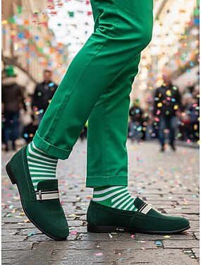 mocassini da uomo con fibbia verde: design elegante e comodo, ideali per il giorno di San Patrizio, abbigliamento casual e comfort quotidiano