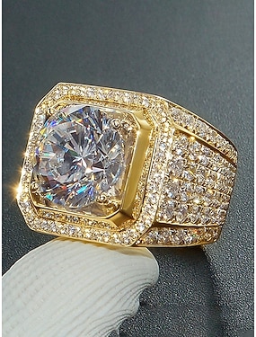 anello da uomo in lega placcata oro/argento con grande zirconia cubica quadrata, tempestato di piccoli diamanti, perfetto per San Valentino, matrimoni e come regalo